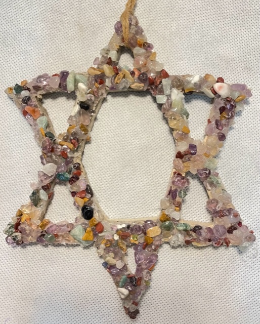 מגן דוד מחומר שריפה בתנור עם הדבקת כל צבעי הקריסטלים – לתליה