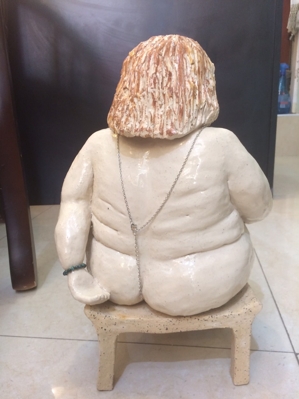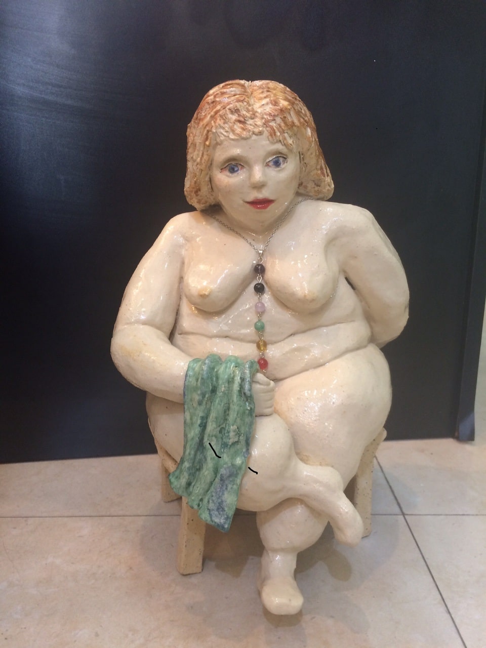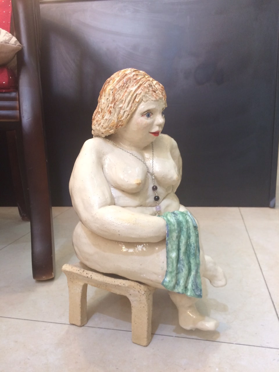 / עבודת יד – פסלים אישה יושבת על שרפרף לאחר מקלחת